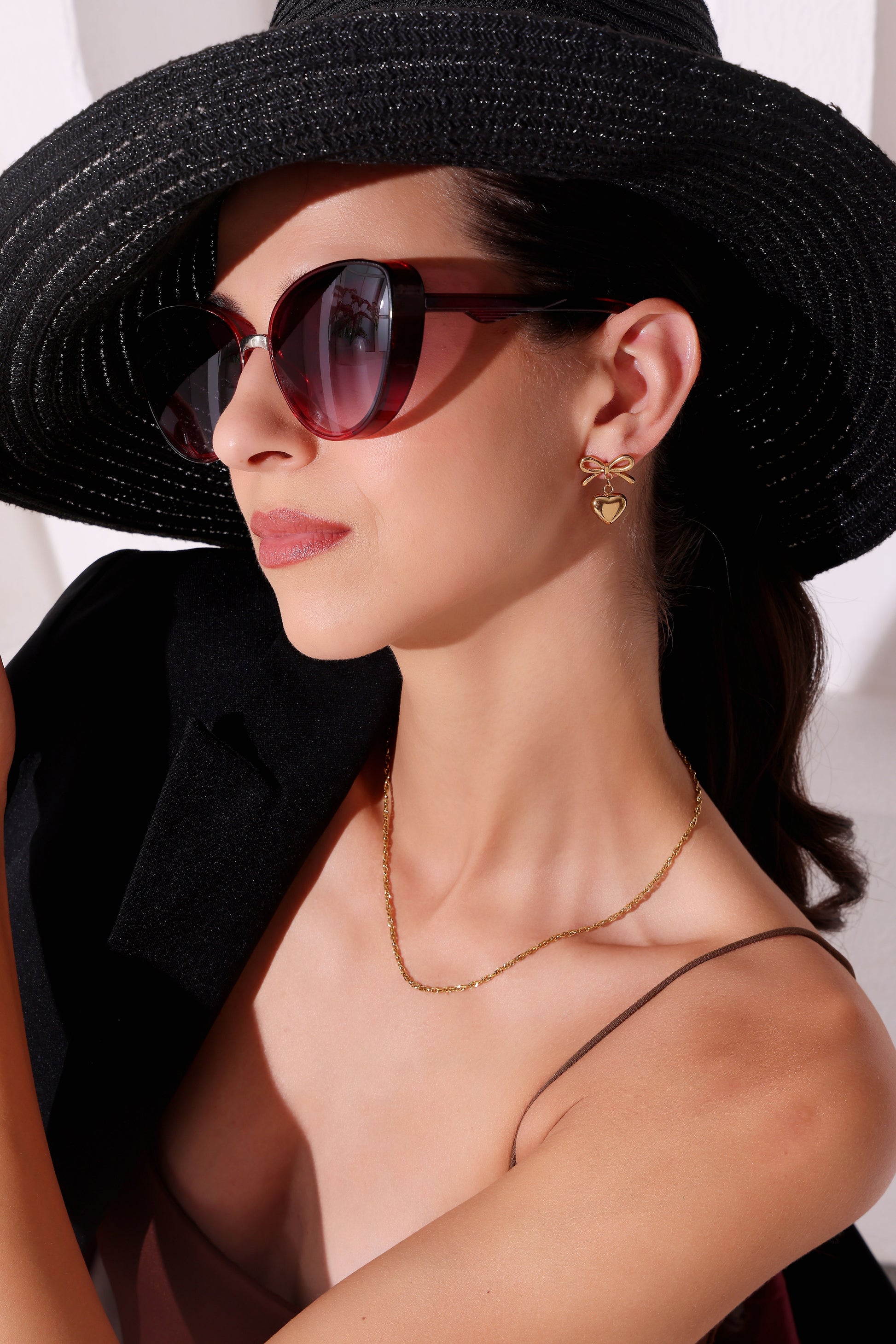 A blend of romantic charm and timeless elegance, these drop earrings feature a delicate heart shape intertwined with a bow knot motif. Their versatile design radiates sophistication while keeping a touch of sweetness—perfect for both everyday wear and special occasions.