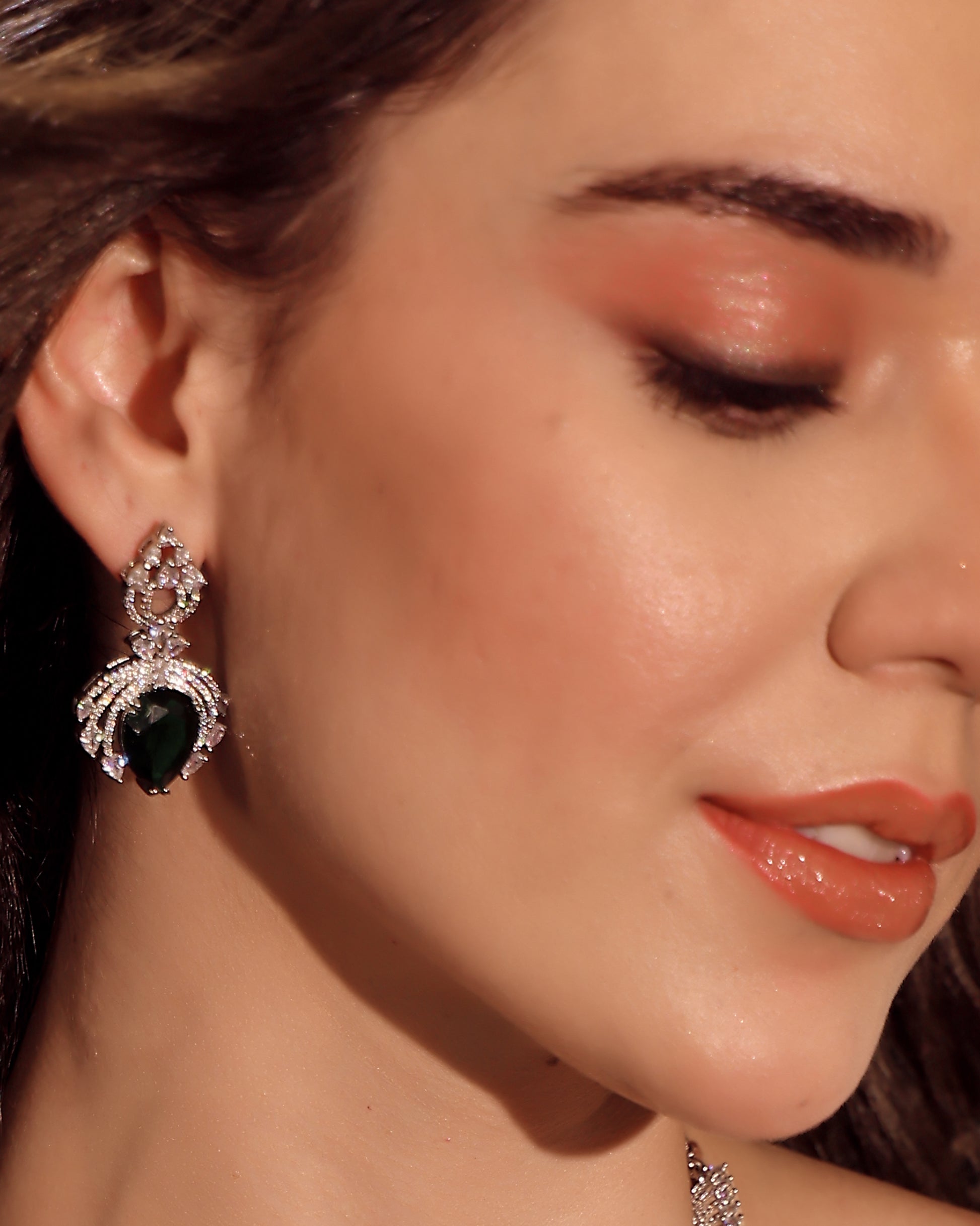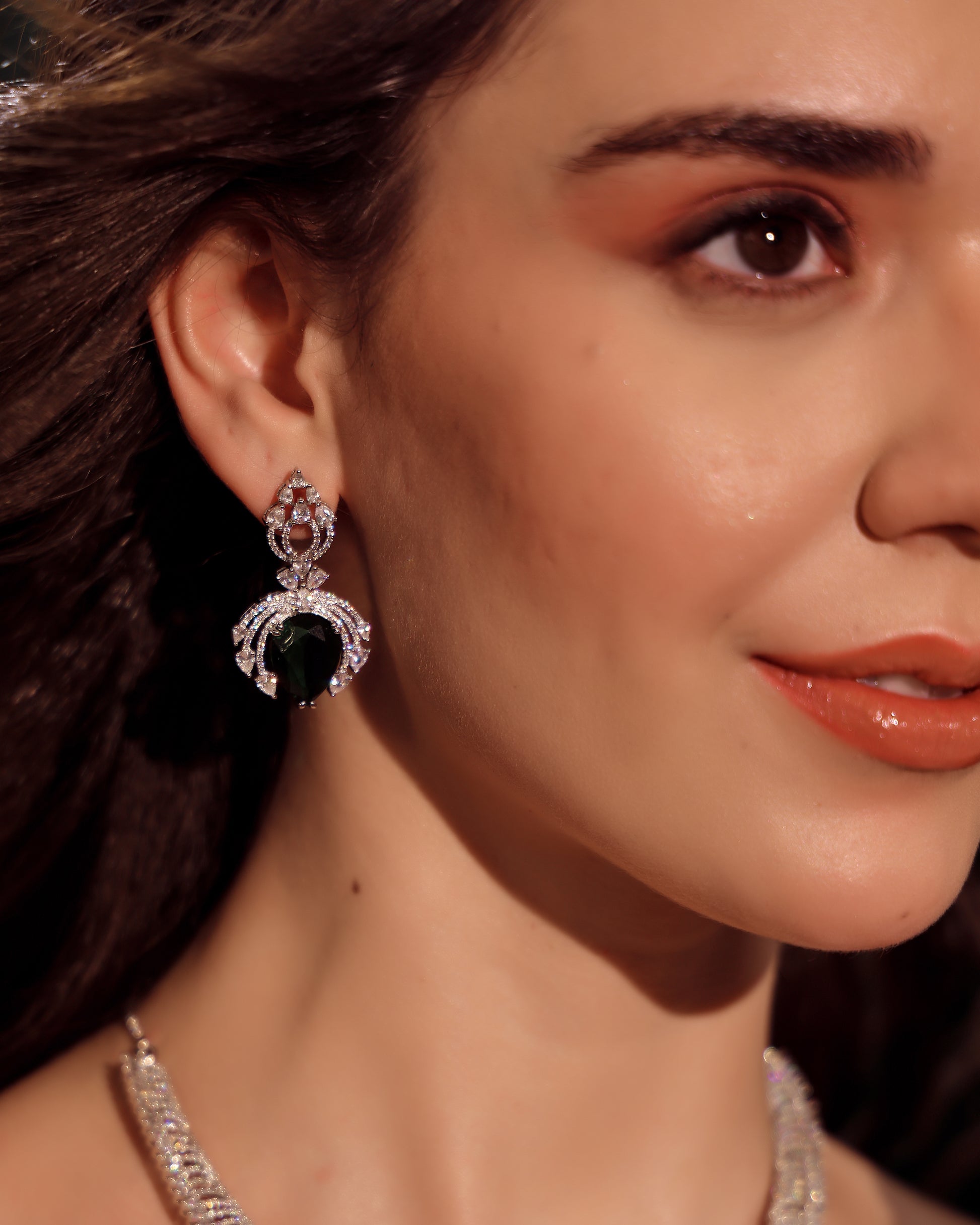 With its striking contrast of jet-black stones against a cascading brilliance of American Diamonds, the Midnight Flair AD Luxe Set is an ode to modern sophistication. Dramatic yet refined, this set is the perfect companion for evening affairs that demand your finest.