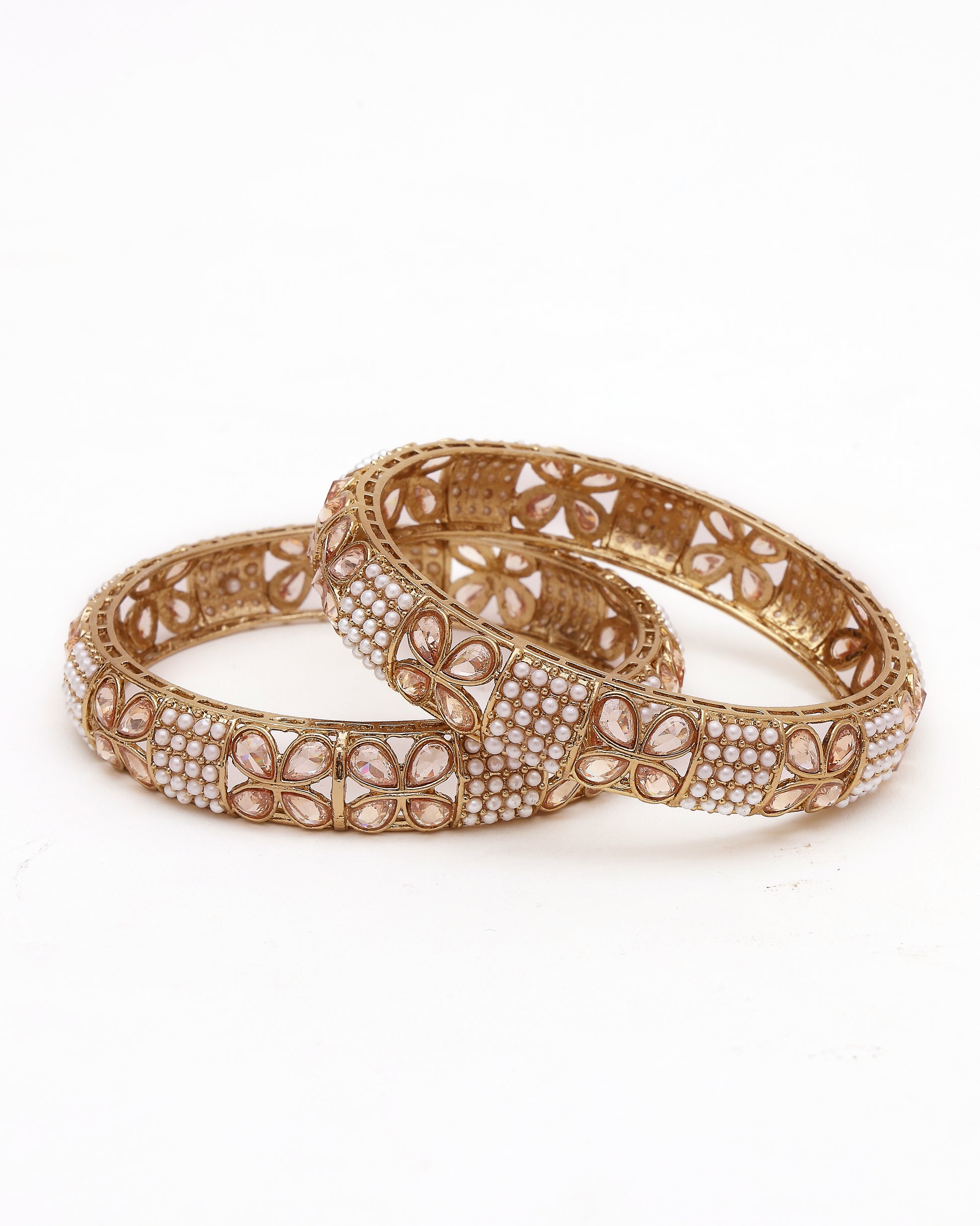 Make a statement of tradition and grace with this floral pearl-kundan bangle – a reflection of regal Indian craftsmanship.