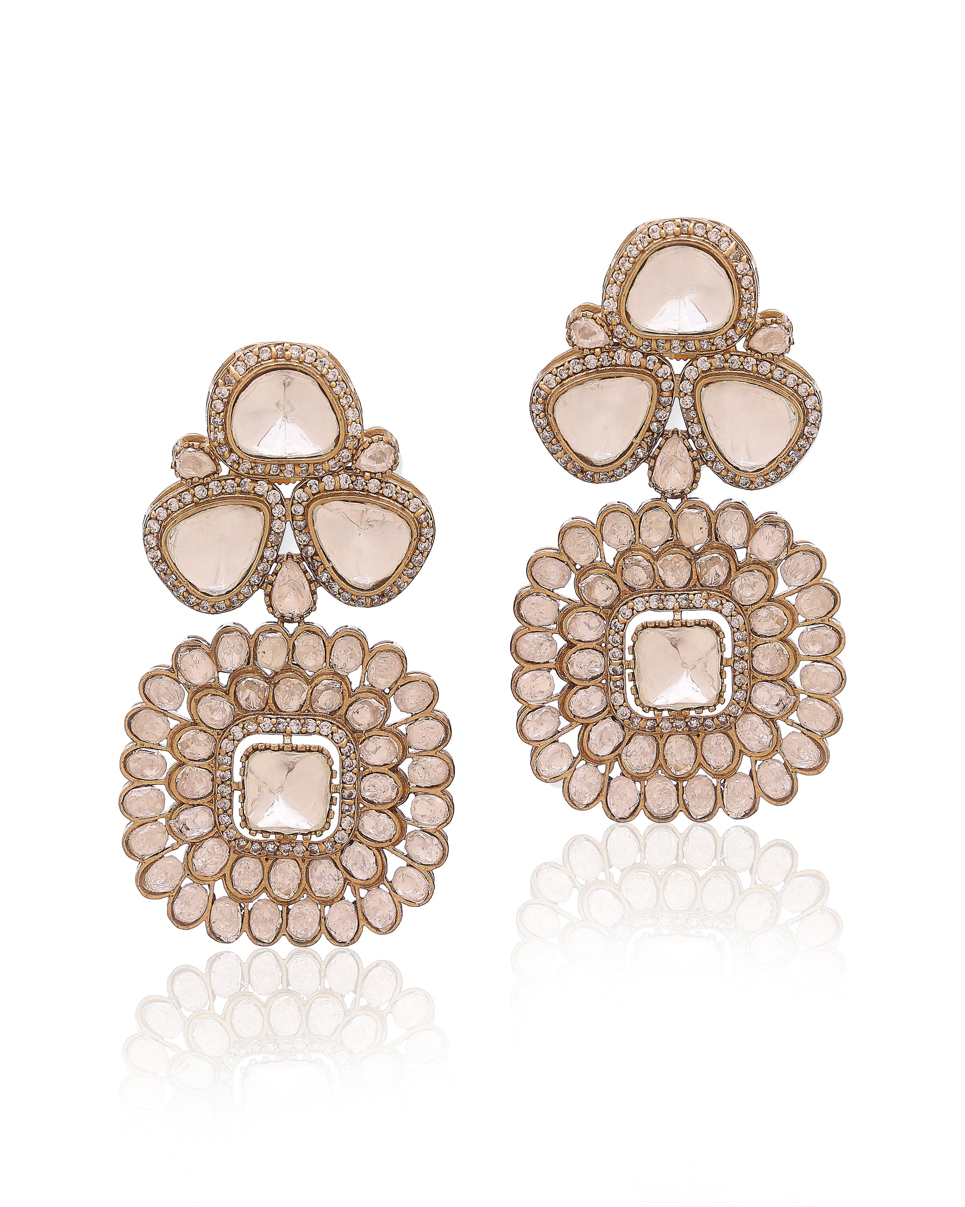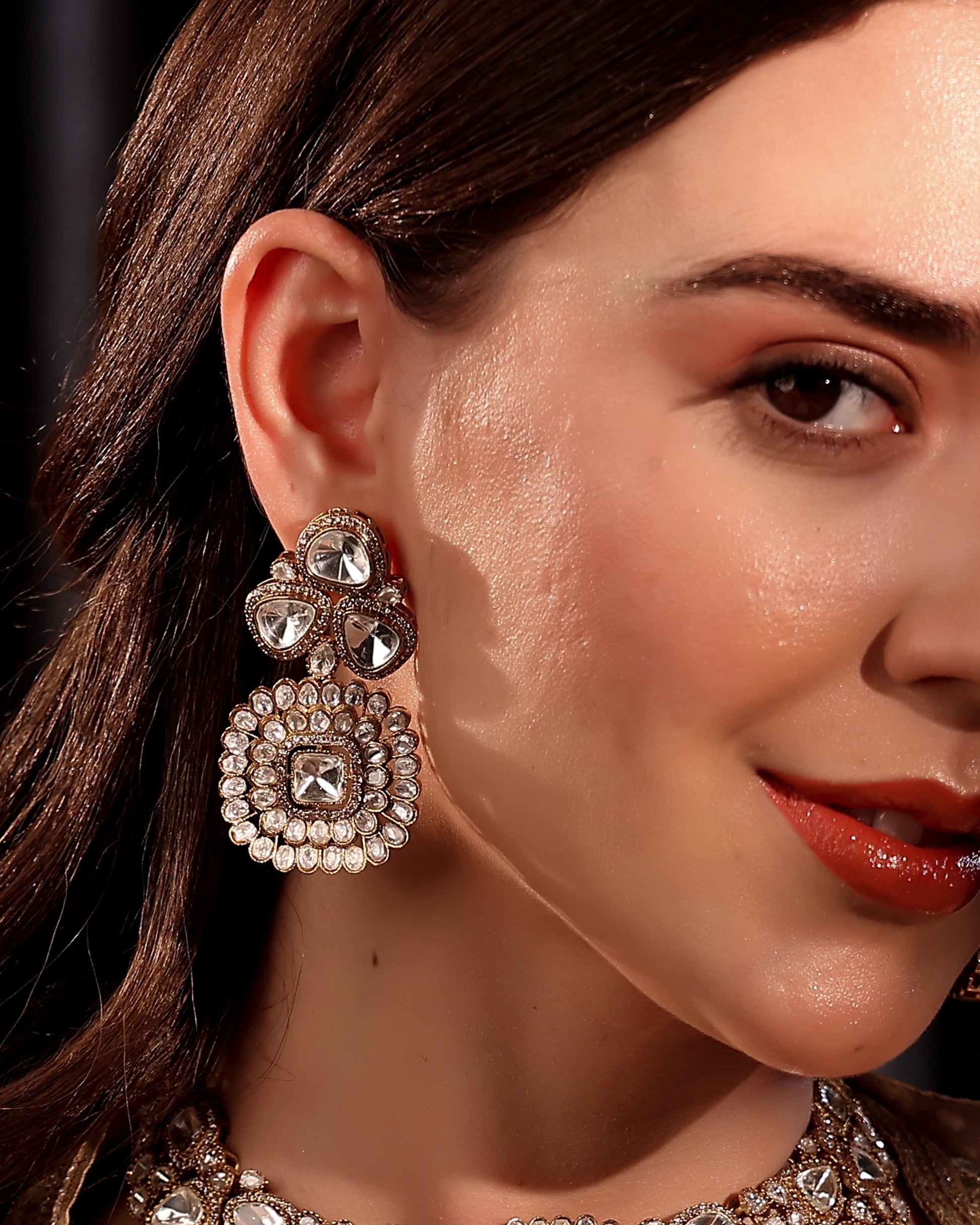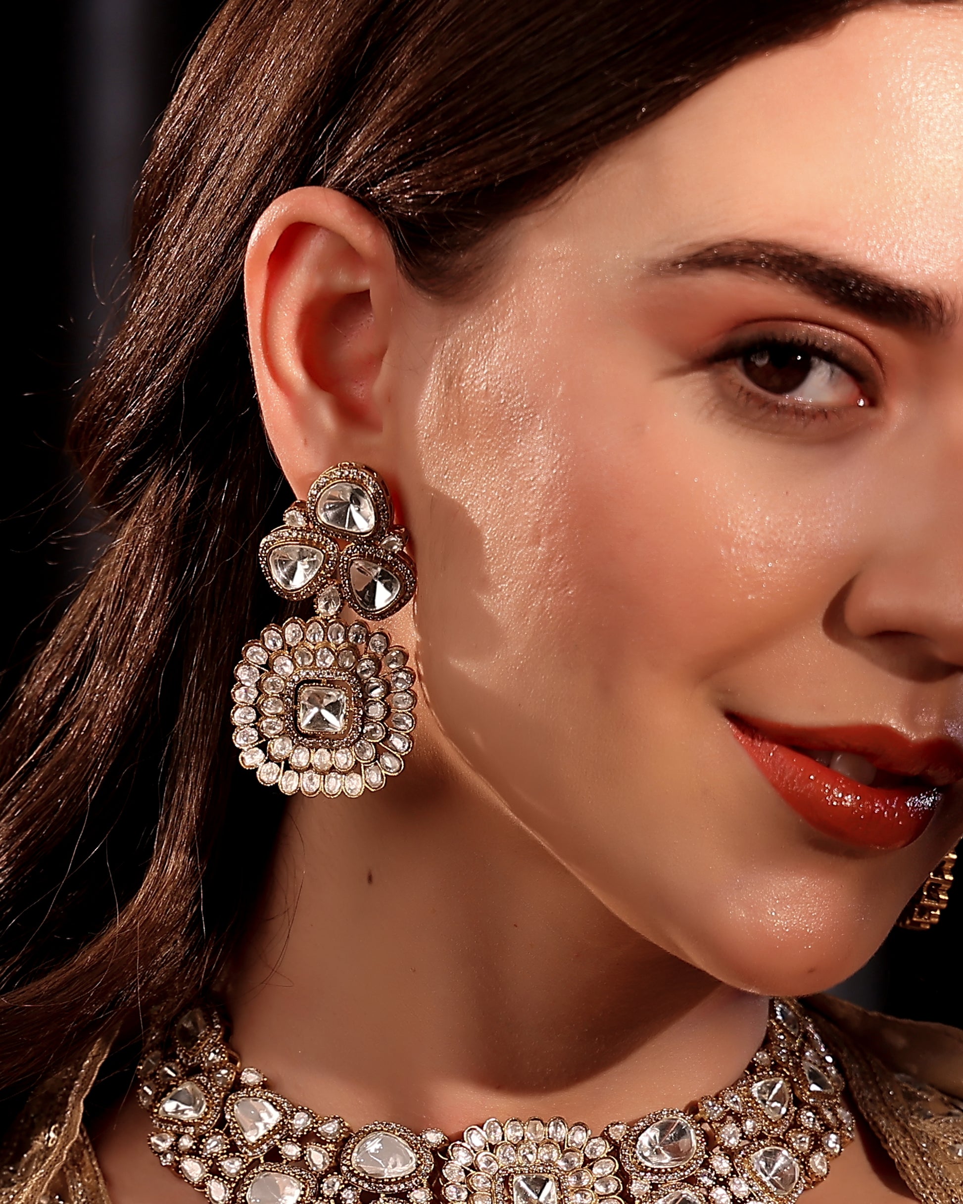 ◦ Earrings mirror the grandeur with bold, chandelier-style floral clusters