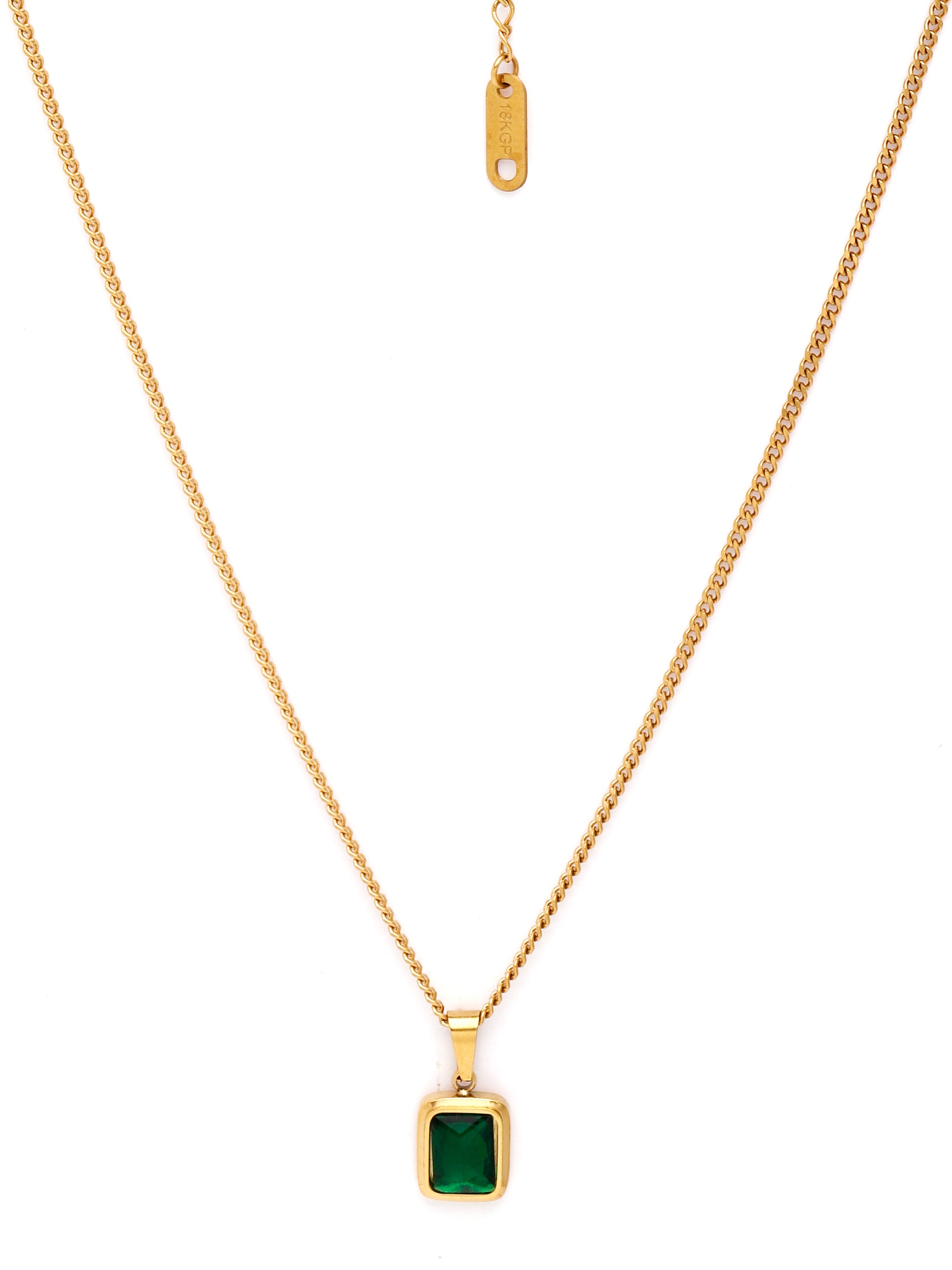 A bold statement of retro elegance and luxury, this pendant necklace showcases a striking square-shaped design inlaid with shimmering zircon. Its geometric silhouette and radiant golden finish create a versatile piece with timeless appeal, designed for both men and women who appreciate refined jewellery.