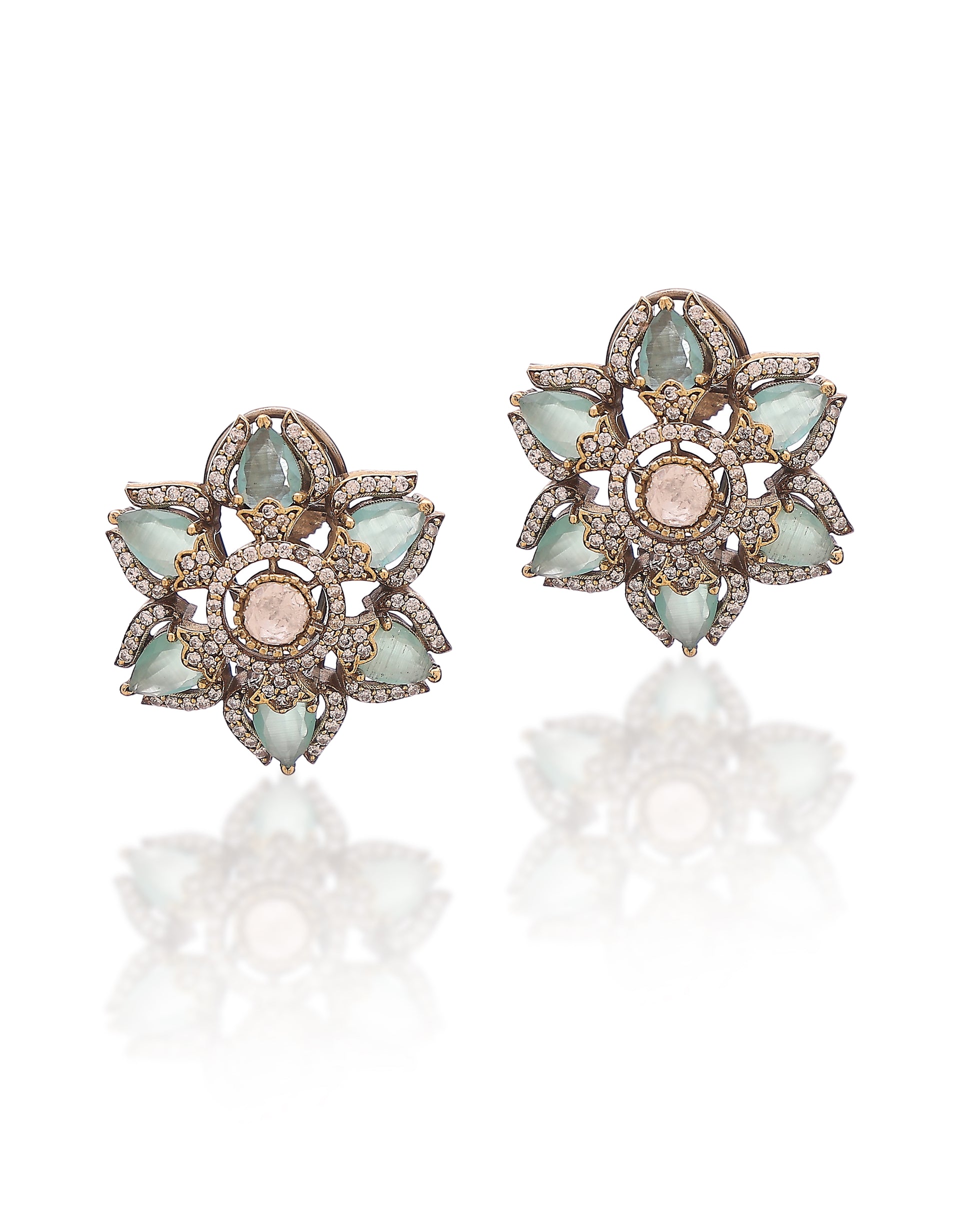 • Stones: Teardrop-shaped green glass stones and precision-cut American diamonds (AD)