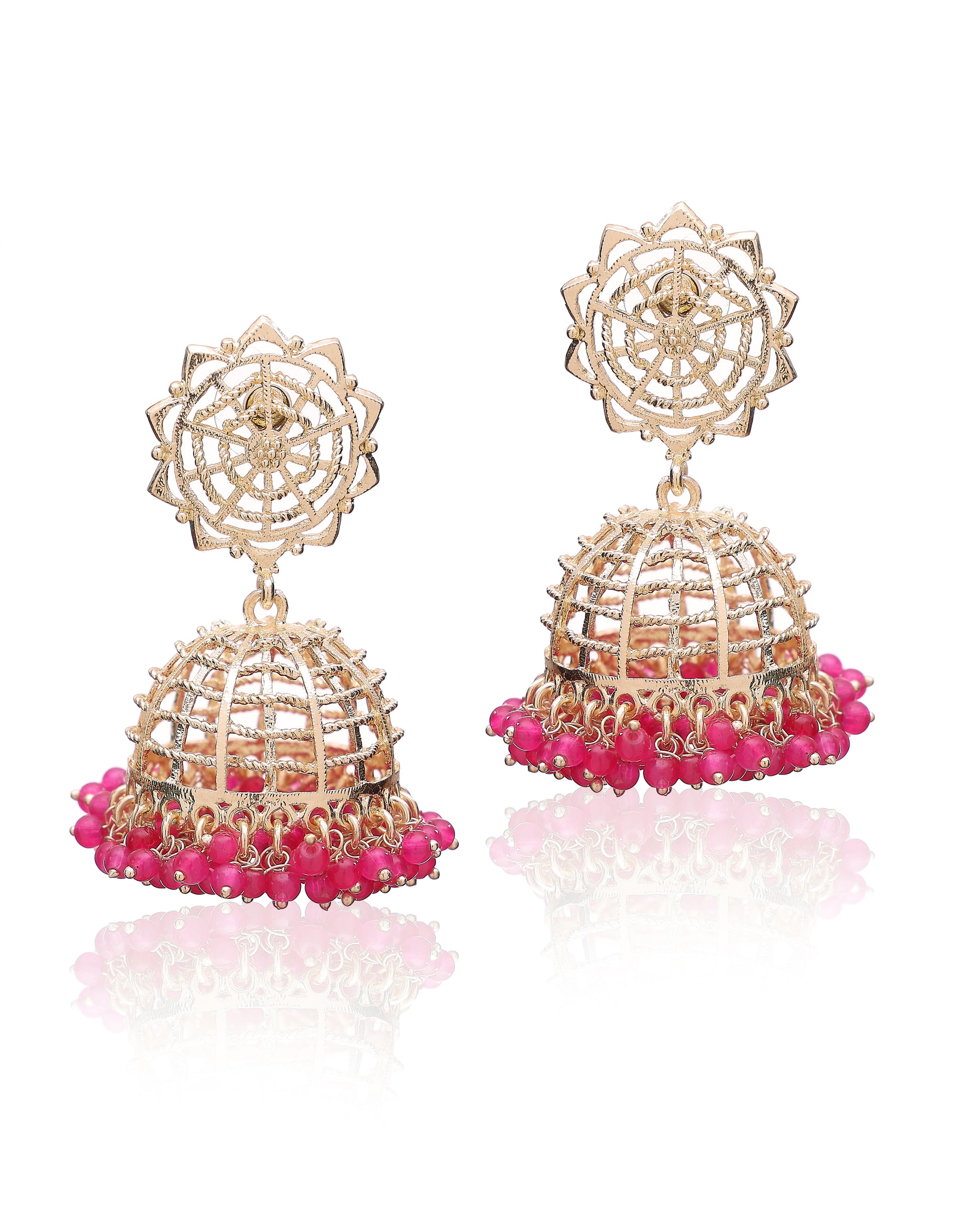 Zarina Ruby Lattice Jhumkas – A celebration of symmetry, sparkle, and standout style.